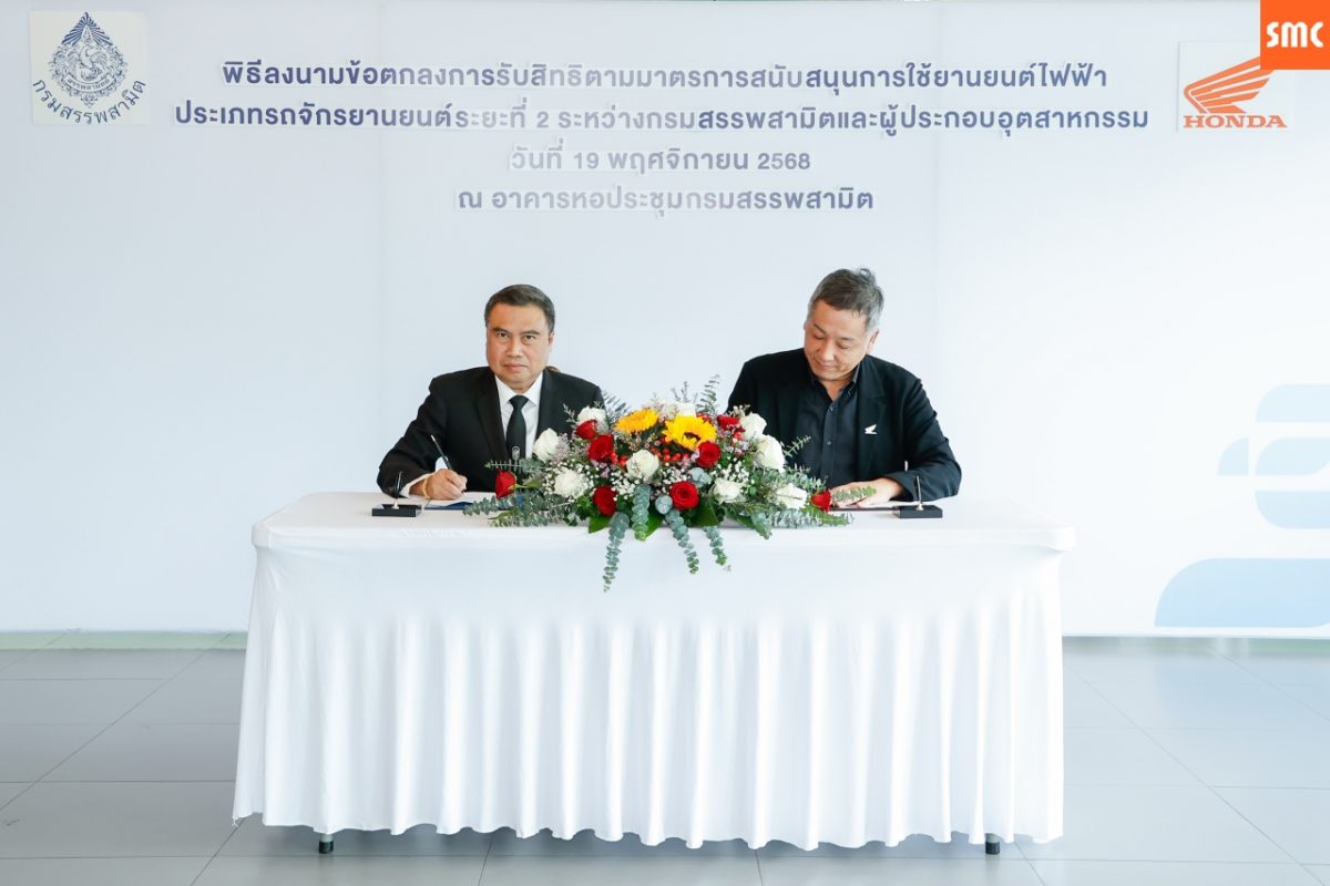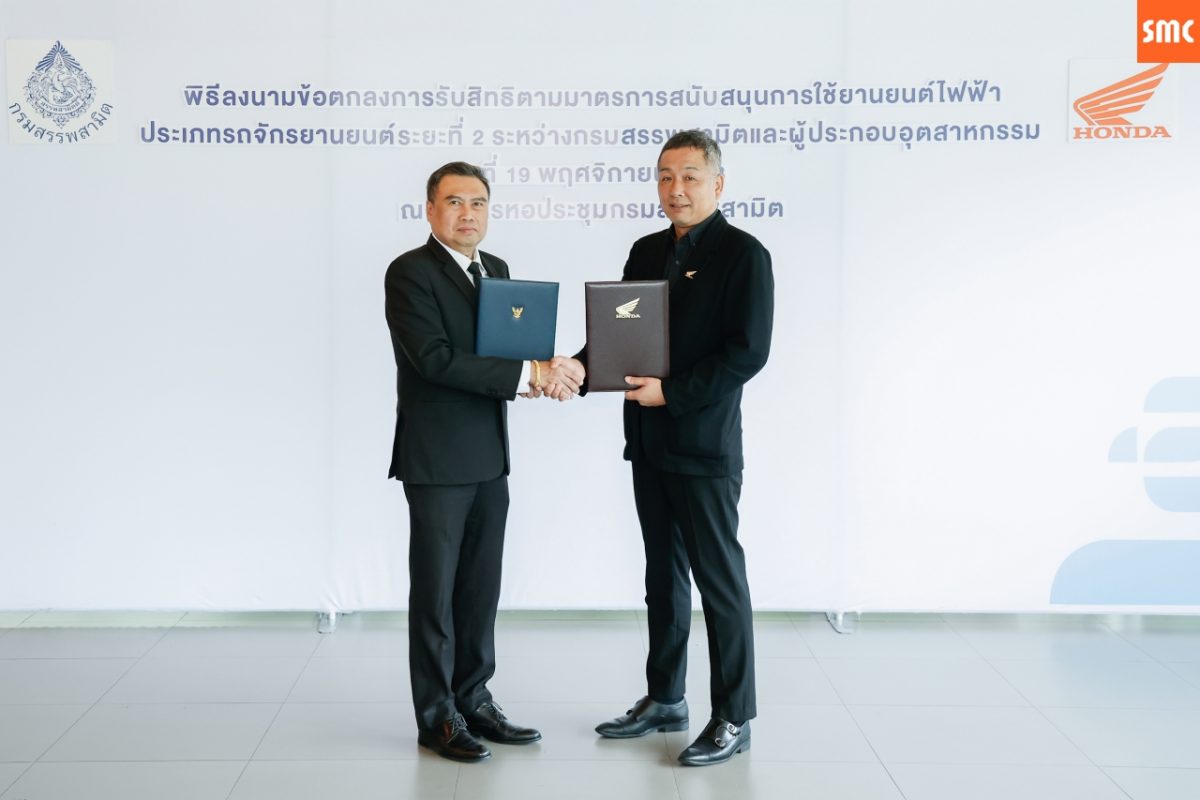 ไทยฮอนด้า ผู้ผลิตและจัดจำหน่ายรถจักรยานยนต์ และเครื่องยนต์อเนกประสงค์ฮอนด้าในประเทศไทยเข้าร่วมพิธีลงนามบันทึก “พิธีลงนามข้อตกลงการรับสิทธิตามมาตรการสนับสนุนการใช้ยานยนต์ไฟฟ้า ประเภทรถจักรยานยนต์ระยะที่ 2” ระหว่างกรมสรรพสามิตและผู้ประกอบอุตสาหกรรมอย่างเป็นทางการ เพื่อยกระดับอุตสาหกรรมยานยนต์ไฟฟ้าของประเทศไทยให้เติบโตอย่างแข็งแกร่งและยั่งยืน พร้อมทั้งผลักดันการใช้พลังงานสะอาด ลดการปล่อยคาร์บอน และขับเคลื่อนประเทศไปสู่เศรษฐกิจสีเขียว ตามวิสัยทัศน์ของฮอนด้าที่มุ่งสู่ Carbon Neutrality ภายในปี พ.ศ. 2593