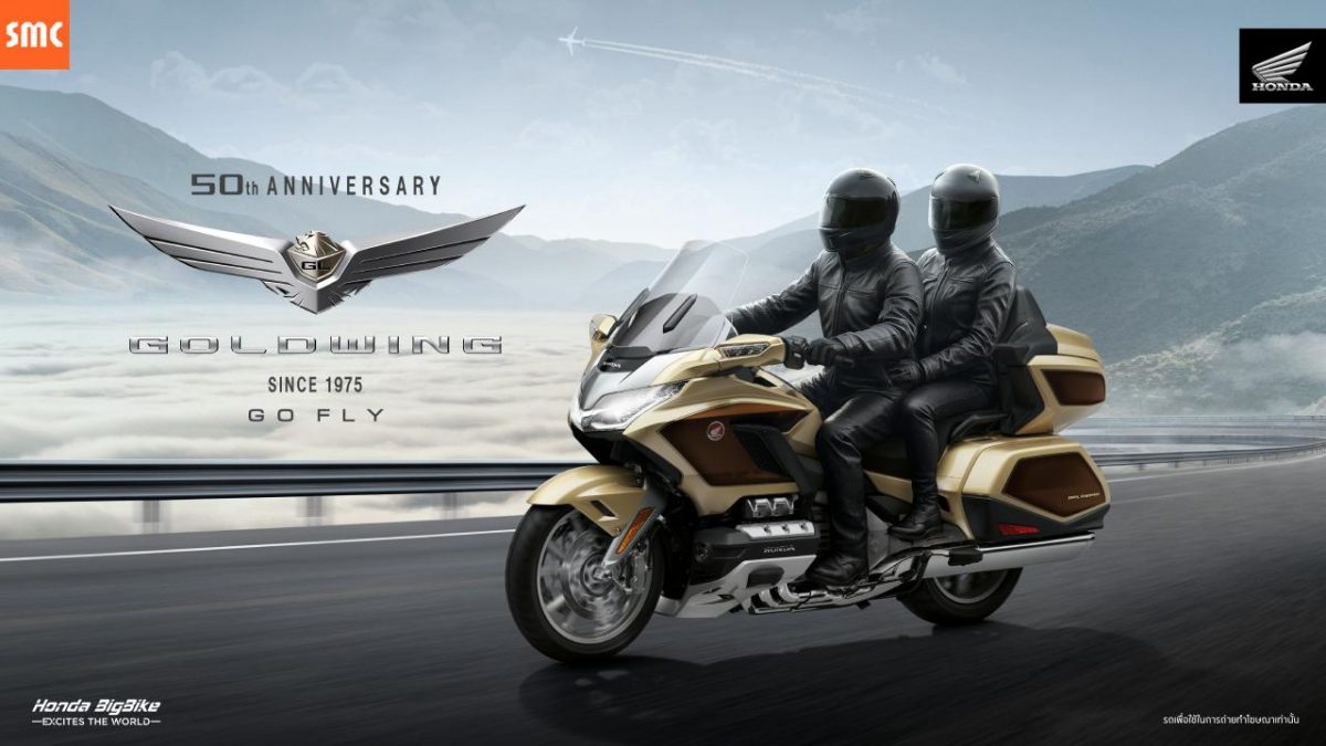 เพื่อส่งมอบประสบการณ์การขับขี่ที่เหนือระดับ ฮอนด้าบิ๊กไบค์ จึงได้นำเสนอรถจักรยานยนต์สายทัวร์ริ่งระดับท็อปคลาส New Honda GOLDWING 50th Anniversary Edition รุ่นฉลองครบรอบ 50 ปีที่สะท้อนตำนานความหรูหราและความสะดวกสบายในแบบทัวร์ริ่งไบค์ชั้นนำของโลก ภายใต้คอนเซปต์ ‘GO FLY ให้ทุกตำนานทะยานออกไป’ โดดเด่นด้วยตราสัญลักษณ์ 50th Anniversary สีทองบริเวณคอนโซลหน้าและกุญแจรีโมทอัจฉริยะ พร้อมสองสีพิเศษที่ได้รับแรงบันดาลใจจากรุ่น GL1000 ในตำนาน ได้แก่ Bordeaux Red Metallic และ Glamis Gold Metallic
