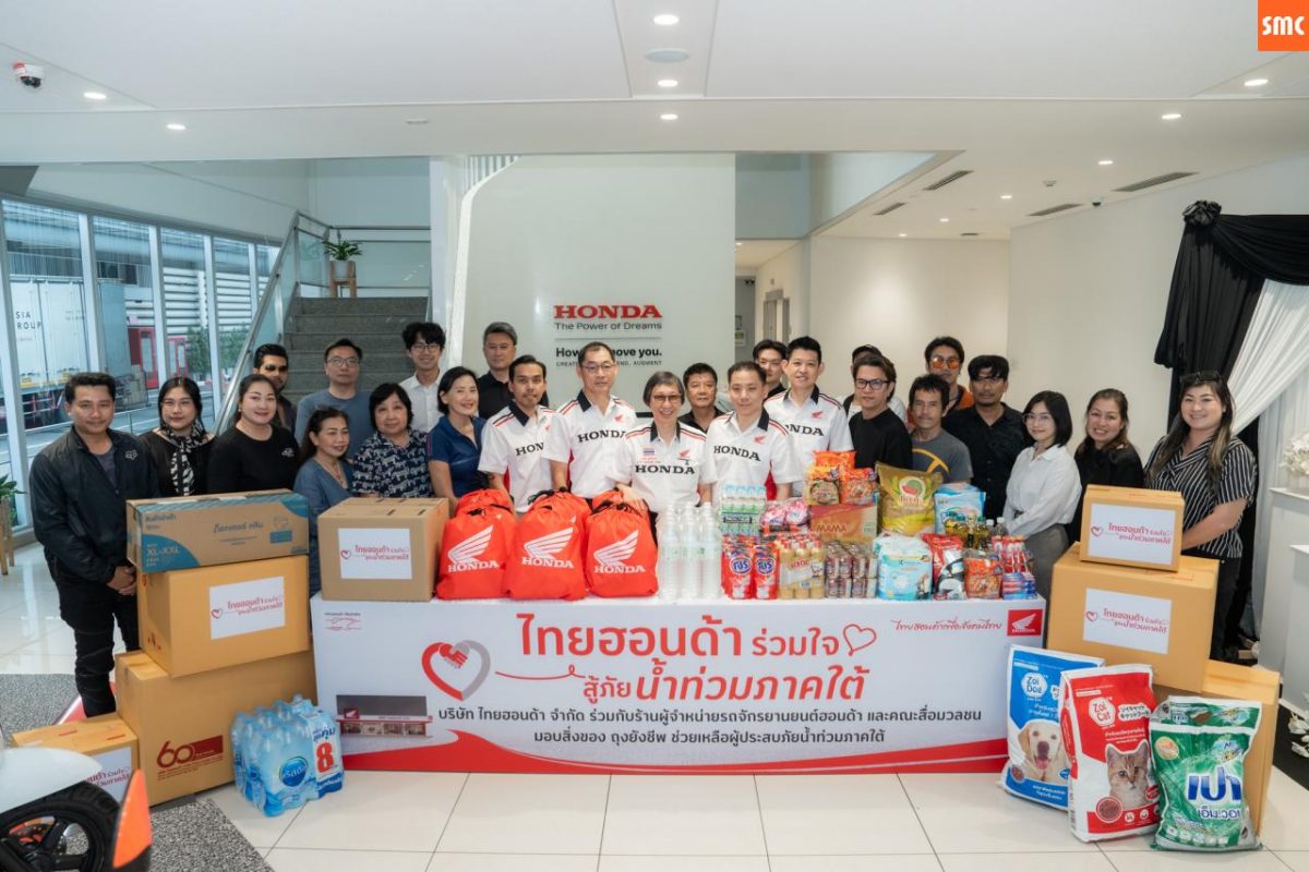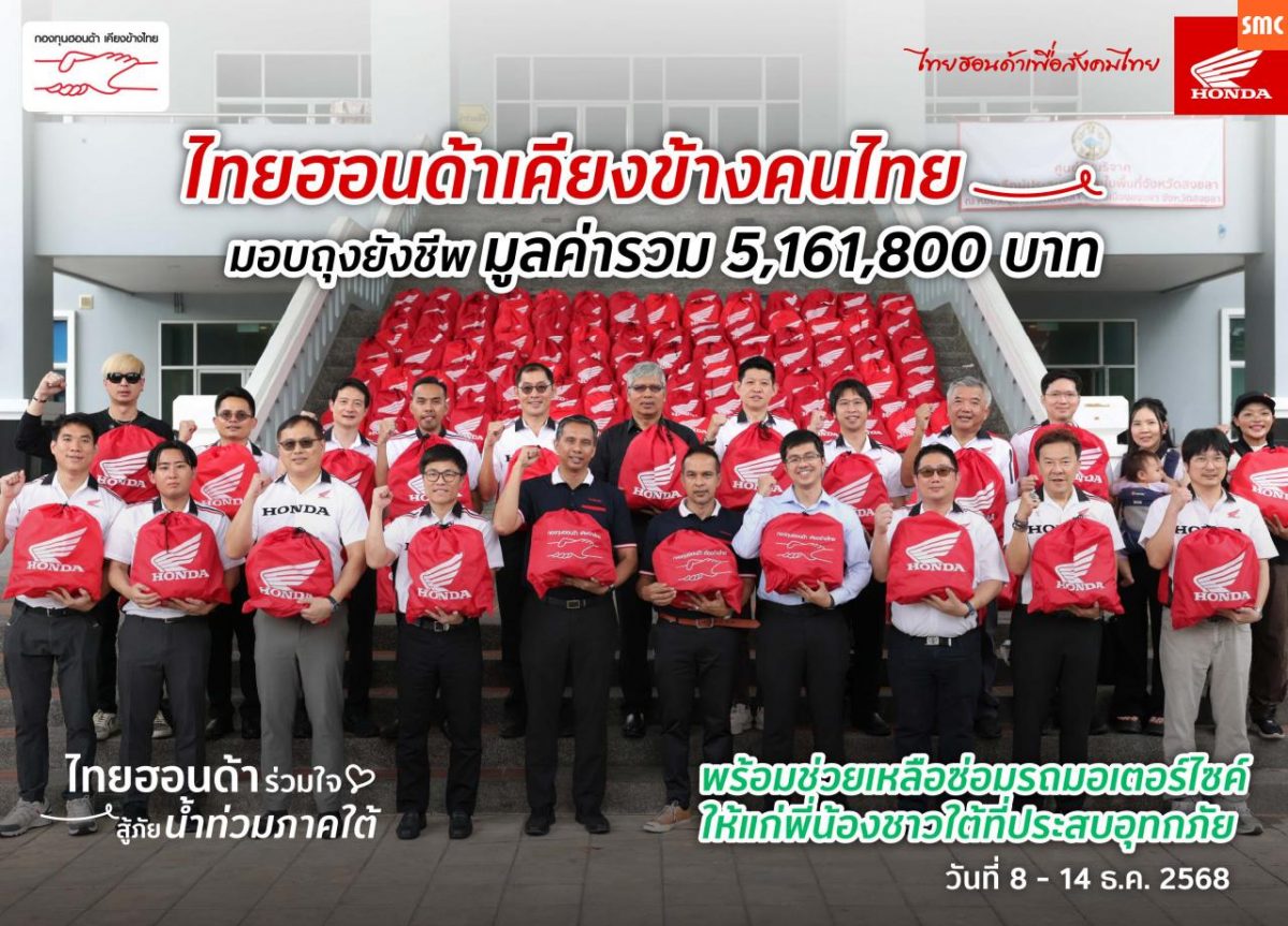 ไทยฮอนด้า ผนึกกำลังร้านผู้จำหน่าย พร้อมกองทุนฮอนด้าเคียงข้างไทย และสื่อมวลชน ร่วมส่งมอบถุงยังชีพ 8,603 ถุง มูลค่ารวม 5.16 ล้านบาท บรรเทาผลกระทบน้ำท่วมหาดใหญ่