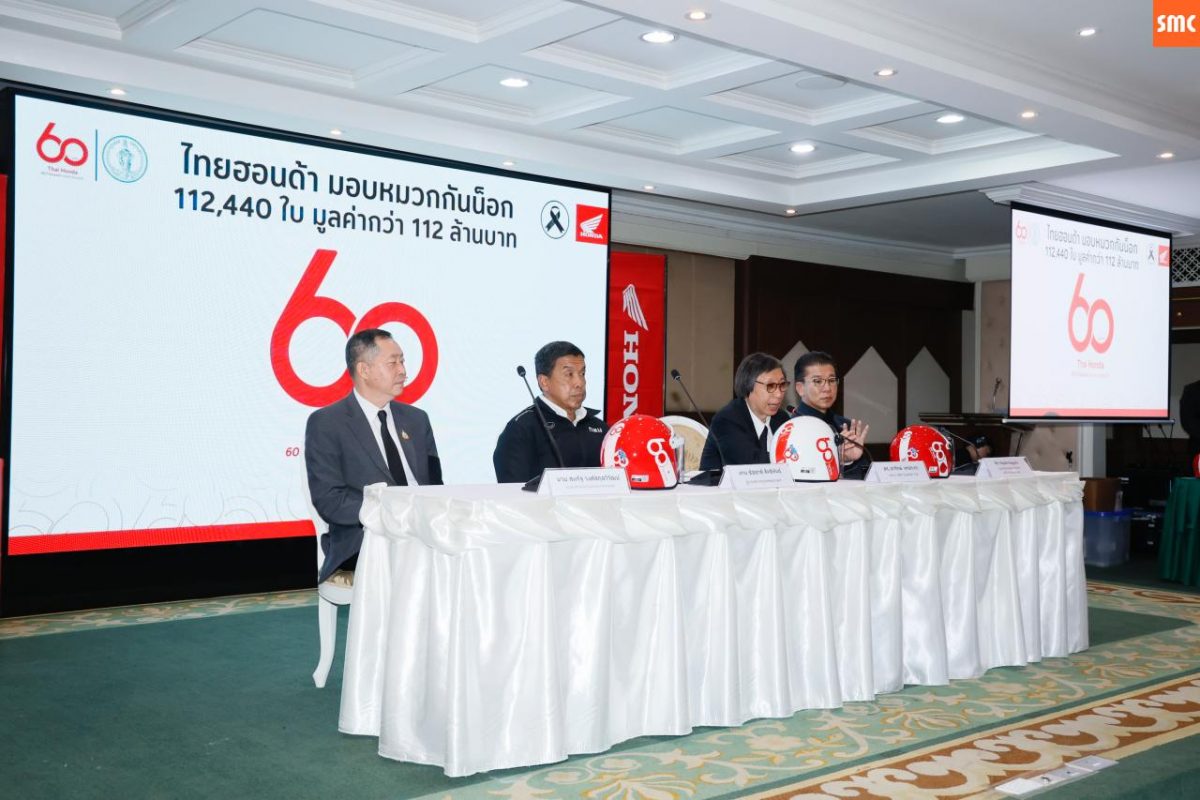 ด้าน นายฮายาโตะ เซกุจิ รองประธานกรรมการบริหาร บริษัท ไทยฮอนด้า จำกัด กล่าวว่า “เนื่องในโอกาสครบรอบ 60 ปี ไทยฮอนด้า บริษัทฯ ได้ดำเนินโครงการภายใต้แนวคิด ‘60 ปี ไทยฮอนด้า ขับขี่ปลอดภัย เพื่อสังคมไทยที่ยั่งยืน’ โดยตั้งใจส่งมอบหมวกกันน็อกจำนวน 60,000 ใบ และได้รับความร่วมมือจากผู้จำหน่ายรถจักรยานยนต์ฮอนด้าทั่วประเทศ ร่วมสมทบเพิ่มเติมอีก 52,440 ใบ ทำให้สามารถส่งมอบหมวกกันน็อกรวมทั้งสิ้น 112,440 ใบ ครอบคลุมครบทั้ง 77 จังหวัดทั่วประเทศ”