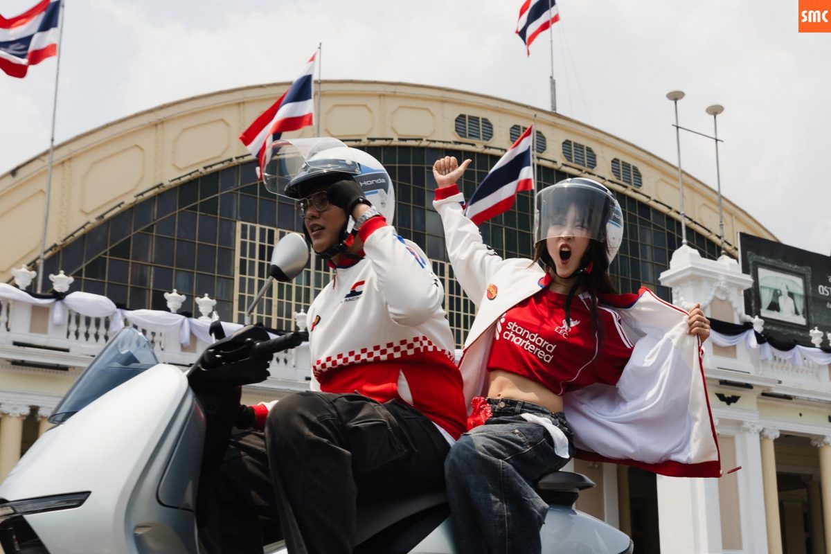 รถจักรยานยนต์ฮอนด้า ปลุกสีสันก่อนศึกแดงเดือด พาแฟนผี-เด็กหงส์ขี่ New Honda UC3 ทำภารกิจวอร์มศึกกลางกรุงฯ