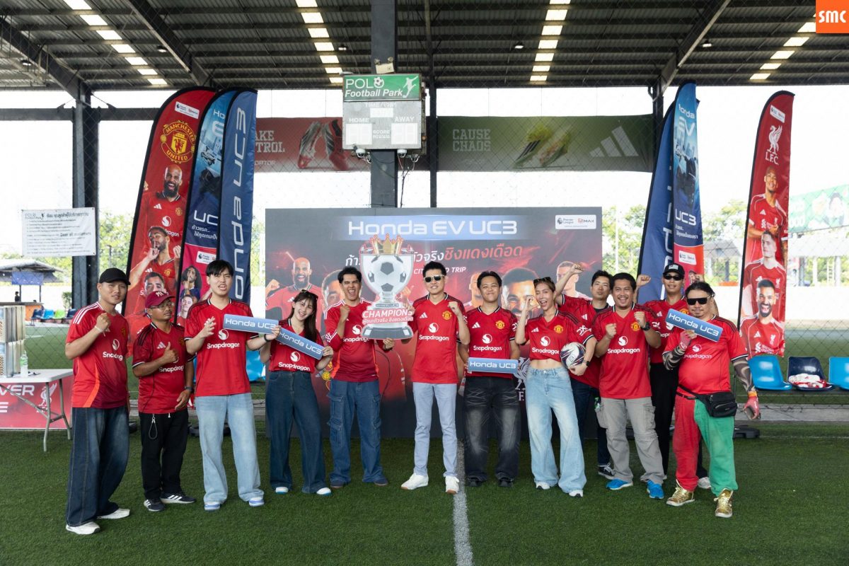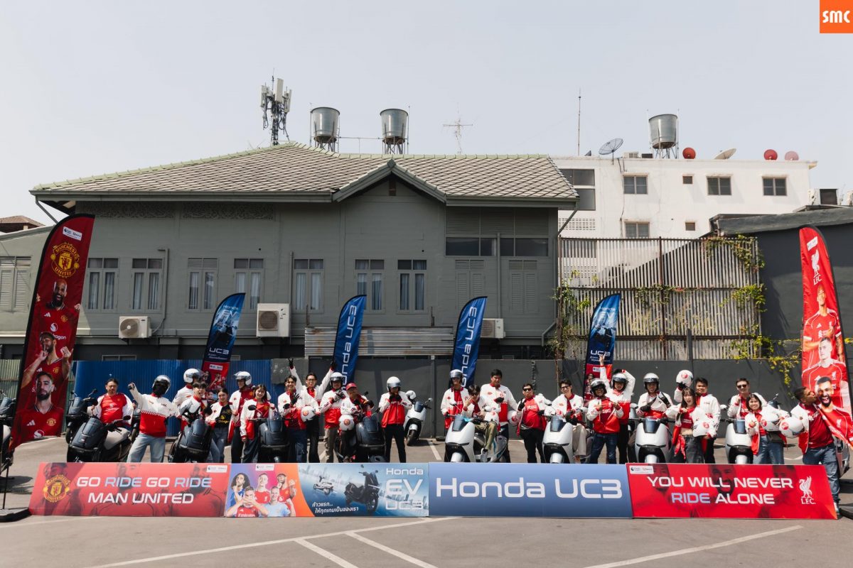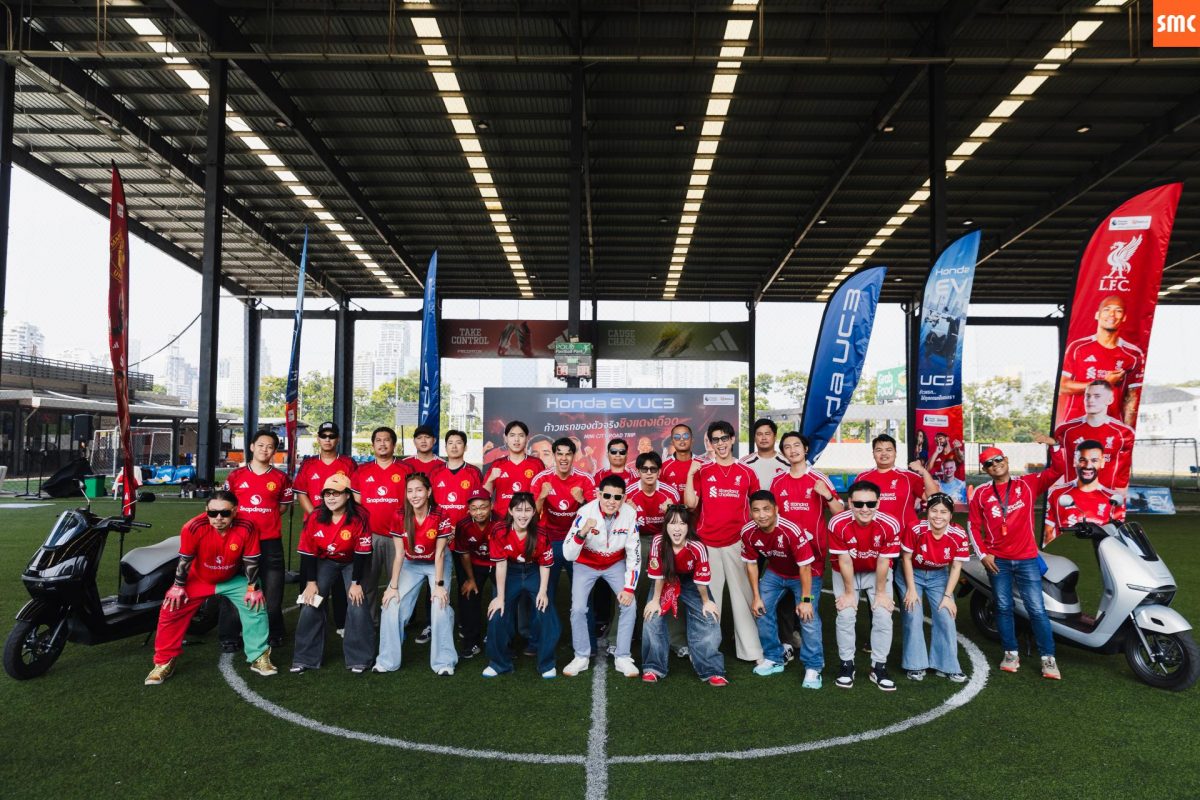 รถจักรยานยนต์ฮอนด้า ผู้สนับสนุนการถ่ายทอดสดพรีเมียร์ลีกอย่างเป็นทางการ สร้างสีสันต้อนรับบิ๊กแมตช์แห่งศักดิ์ศรีของแฟนบอลทั่วโลก จัดกิจกรรมก่อนศึกแดงเดือด “Honda EV UC3 ก้าวแรกของตัวจริงชิงแดงเดือด!” เมื่อวันที่ 29 เมษายน 2569 ภายใต้คอนเซปต์ “เกมยังไม่เริ่ม…แต่การขิงเริ่มแล้ว!” ชวนแฟนบอลตัวจริงของ 2 ทีมคู่ปรับตลอดกาล แมนเชสเตอร์ ยูไนเต็ด และลิเวอร์พูล ร่วมเปิดประสบการณ์ลูกหนังรูปแบบใหม่ ด้วยการขับขี่รถจักรยานยนต์ไฟฟ้ารุ่นใหม่ล่าสุด New Honda UC3 ลุยเส้นทางกลางกรุงฯ เพื่อประกาศศักดา วอร์มความมั่นใจก่อนเกมจริง และร่วมมูเอาฤกษ์เอาชัยก่อนลุ้นศึกแดงเดือดที่กำลังจะมาถึงในวันที่ 3 พฤษภาคมนี้